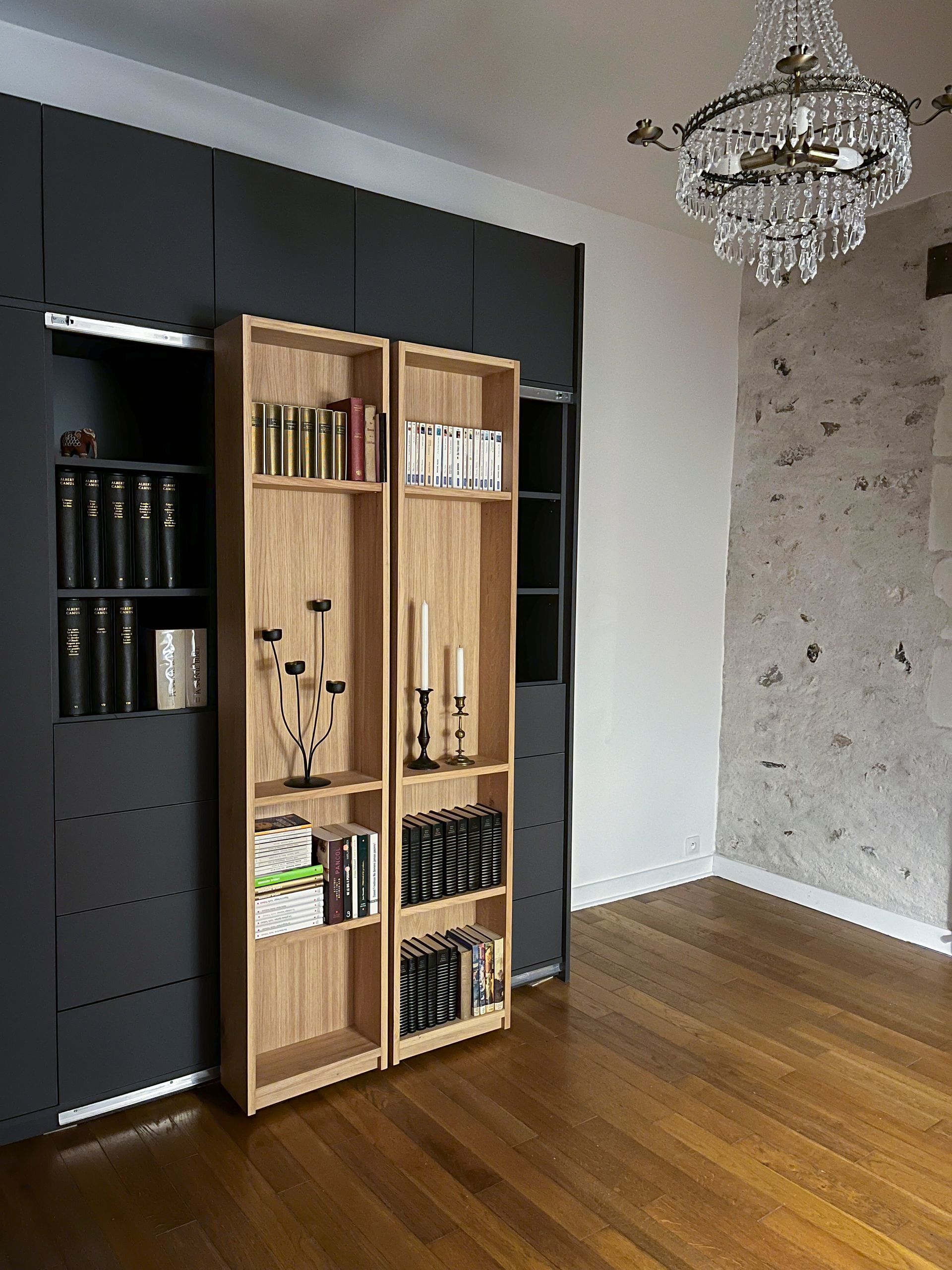 Conscient que chaque projet est spécifique, notre bureau d'étude est à votre disposition pour vous accompagner dans la définition et réalisation de vos bibliothèques, rangements et autres aménagements intérieurs.
